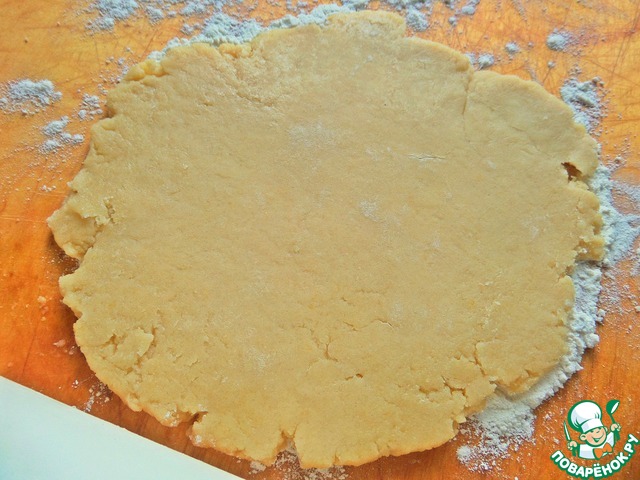 Раскатать наиболее большую часть теста в пласт диаметром 22-24 см.