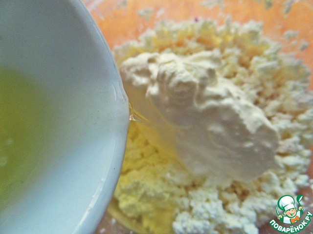 Белок от предыдущего рецепта http://www.povarenok .ru/recipes/show/130 080/ влить вместе со сметаной в творог.
