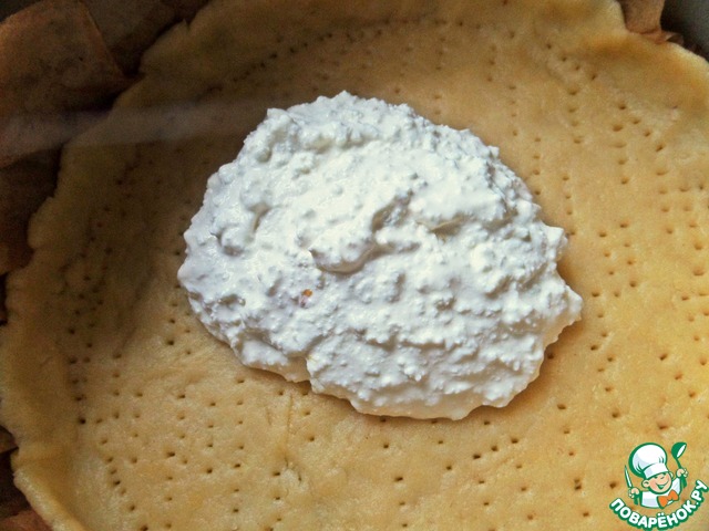 Переложить начинку на песочное тесто-основу.