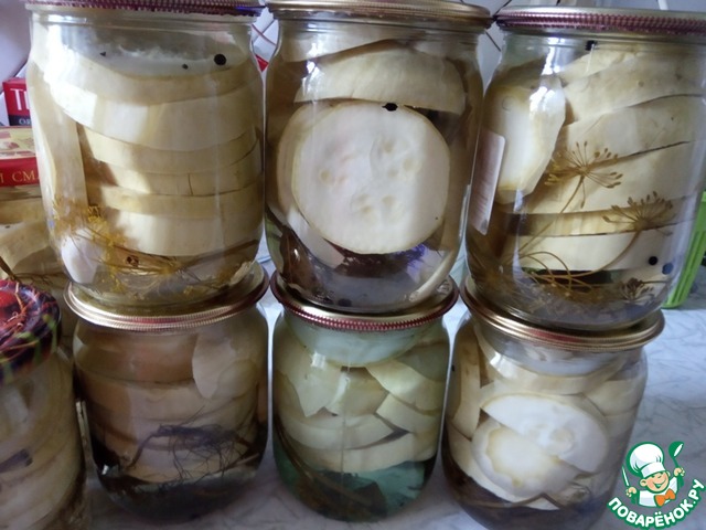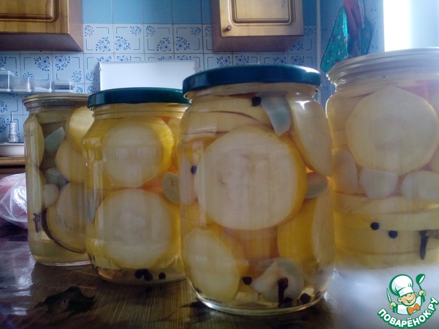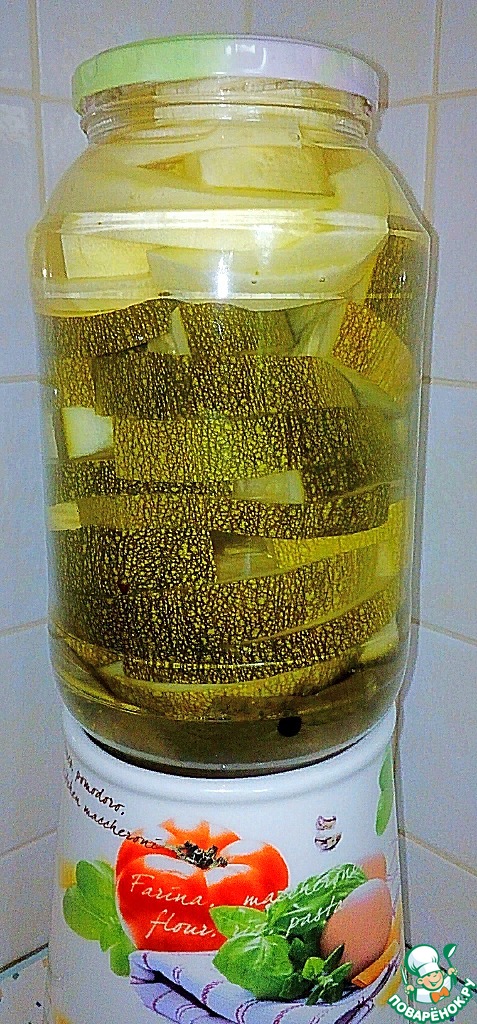Кабачки заливала кипятком 2 раза (каждый раз по минут 20) и третий раз маринадом.