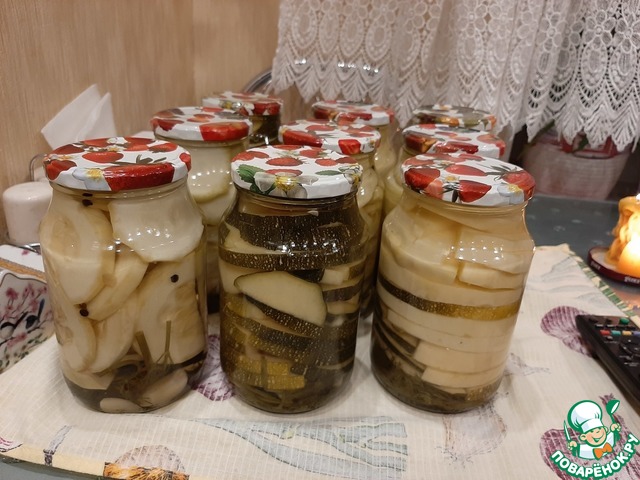 Я указала рецепт на 3 литровых баночки. Но это так... попробовать. Обычно я сразу заготавливаю 5 - 6 кг кабачков.