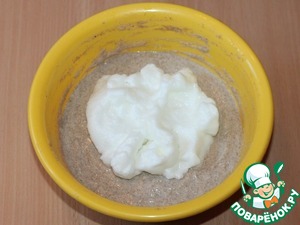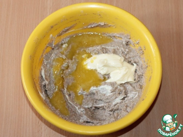 4. Соединить с тестом, осторожно ввести в начале масляную, а затем яичную смесь, взбить тесто.
