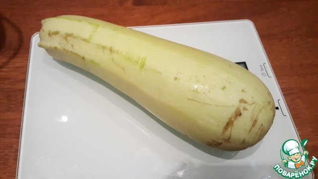 Вот такой средний кабачок у меня был с тонкой кожей и мягкими косточками. Кожу я решила очистить.