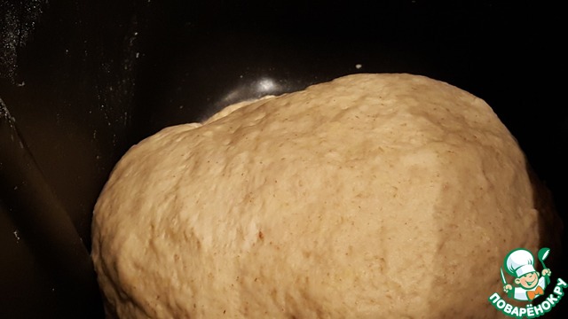 Все ингредиенты у меня были комнатной температуры и я установила режим "быстрая выпечка". На простом режиме можно уменьшить количество дрожжей до одной ч. л. или дать больше времени для подъёма теста при выпечки в духовке. Вот такой, почти не липкий колобочек получился после замеса теста.