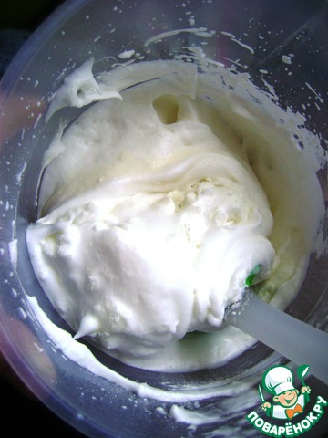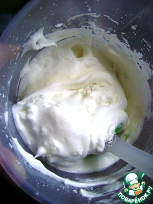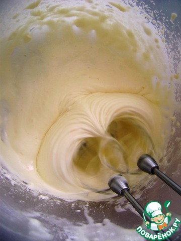Желтки растереть с сахаром и взбить добела.
