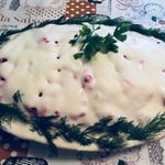 Салат "Сельдь в шубке с ароматной заливкой" готов.