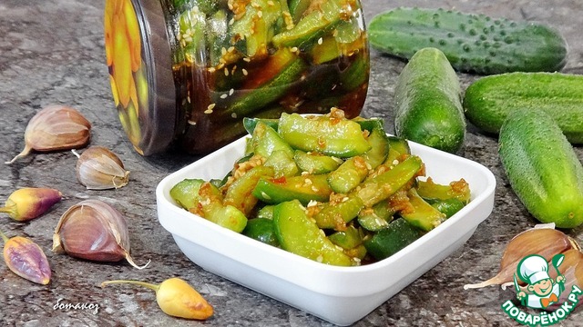 Рецепт «Кисло-сладкие огурцы с кунжутом»: