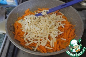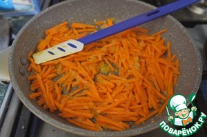 Спассеровать лук на растительном масле до прозрачности, добавить морковь