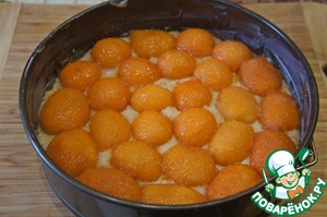 Выложить абрикосы на тесто. Присыпать сахаром.
