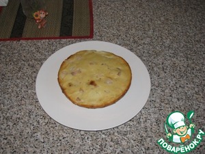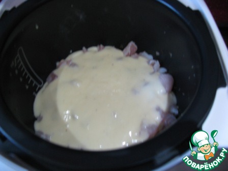 Готовим заливку. Для этого взбиваем сливочный сыр с яйцами и мукой. И разравняв покрываем сверху последним слоем.