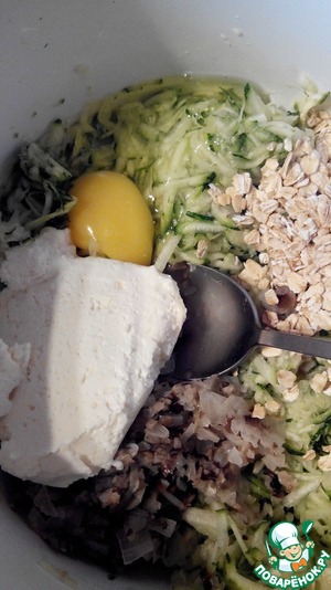Кабачок натираем на крупной терке. Хорошенько отжимаем.