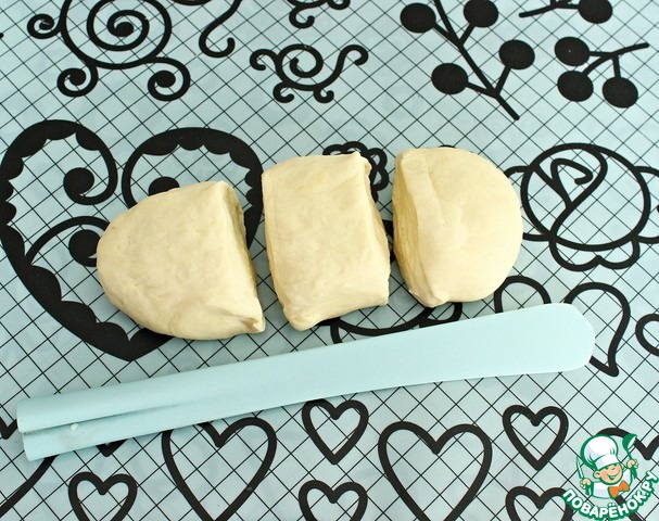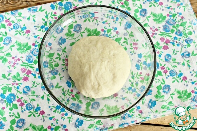 Замесим пластичное тесто, количество муки может быть больше или меньше (в зависимости от муки). Накроем тесто полотенцем и дадим отдохнуть ему 30 минут.