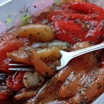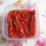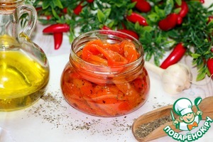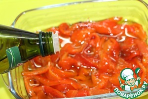 Залить оливковым маслом, чтобы перцы могли его впитать. Оставить не менее, чем на 3-4 ч, чем дольше стоят, тем вкуснее.
