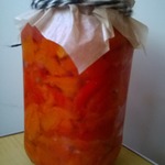 Как заготовка с маслом, по моему, очень калорийно получается. Я заливала свеже сделанным томатным соком. Правда баночки вместе с содержимым придется стерилизовать удобным для вас способом. Я это делаю в духовке. После этого крышки закатываю. Хранить можно в удобном для вас месте.