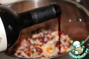 Влить вино, дать ему выпариться. (этот шаг можно и пропустить)