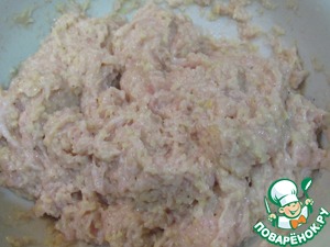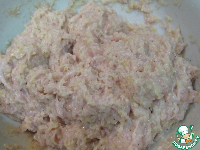Солим, перчим и интенсивно перемешиваем, практически взбиваем, чтоб получился очень однородный и нежный фарш. -