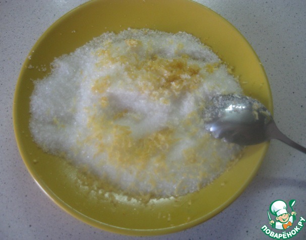 Сливочное масло порубить ножом с мукой. Добавить сахар растертый с лимонной цедрой. Добавить яйца и замесить тесто. Завернуть его в пищевую пленку и убрать в холод 1-1,5 часа.