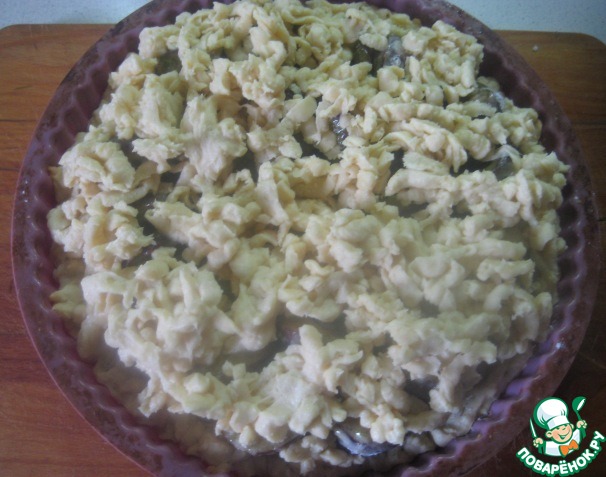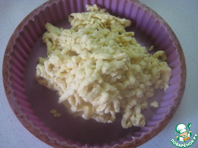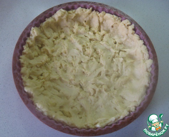 2/3 охлажденного теста натереть в форму для пирога (диаметр моей 20 см).