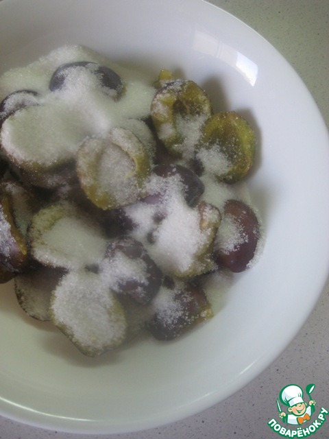 из слив вынуть косточки, засыпать сахаром, дать постоять 10 минут. -