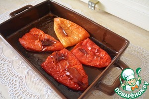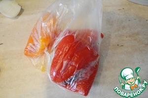 Дальше я проверяю, если кожура плохо отходит, то я быстренько отправляю их в пакетик и оставляю минут на 10 отдохнуть. Тогда перчики абсолютно легко почистить.