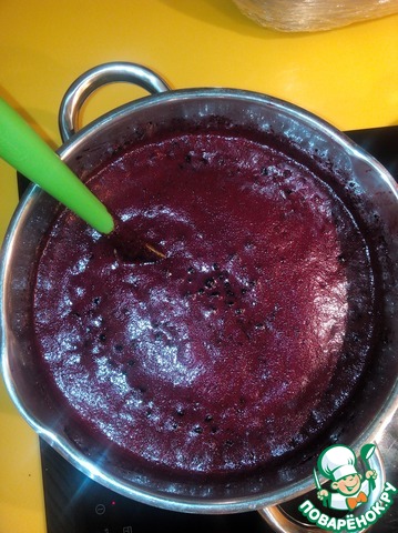 Для джема чернику необходимо блендировать. У меня погружной блендер и если честно, то измельчала я ягоду не очень тщательно, чтобы в баночках попадалась и целая ягодка тоже. Дабы не забрызгать всю кухню, использую нехитрый секрет.