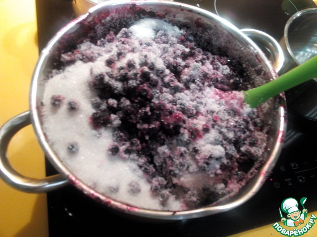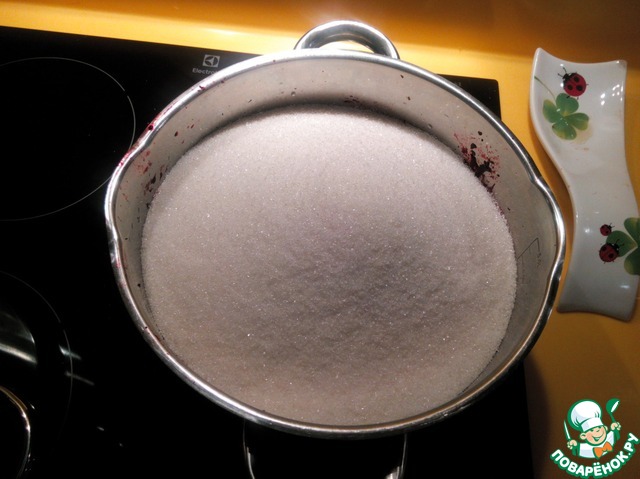 После того, как ягодка достигла нужного состояния высыпаем сахар и ставим на плиту, сначала на небольшой огонь пока весь сахар не растворится, затем на средний...