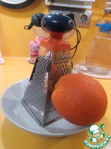 Пока ягодки стояли я приготовила апельсин. Помыла его как следует, натерла цедру, дольки апельсина (без белой прослойки) нарезала кусочками.