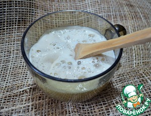 Приготовить опару. В 100 мл теплой воды размешать дрожжи, щепотку сахара и 2 ст. л. цельнозерновой муки. Оставить на 15 минут до образования "шапочки".