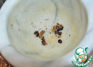 Растолочь ягоды можжевельника в ступке. Просеять, мелкие частички пойдут в тесто, а крупные на посыпку.