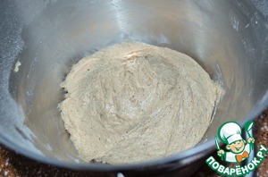 Влить подошедшую опару, оставшуюся теплую воду и начать замес на малой скорости, 5 минут.