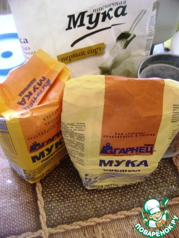 - Мука пшеничная / Мука (мерный стакан от ХП объемом 250 мл) — 1.5 стак.
