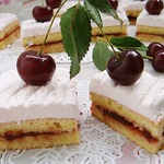 Я положила на пирожные ягоды черешни.
