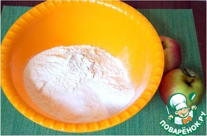 Сначала смешиваю пшеничную и овсяную муку с сахаром (предварительно перемалываю сахар в кофемолке), разрыхлителем и солью.