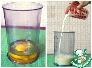 Отдельно взбиваю яйцо с маслом до пенки и добавляю молоко с ванильным сахаром, снова взбиваю.