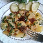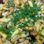 [+5]Я думаю именно сочетание чеснока, укропа и баклажанов дают этот удивительный грибной вкус. Возможно и молодой картофель не последнюю роль играет.