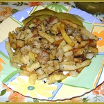 «Ох, и хороша картошечка с грибочками!» -так всегда говорят гости, и мои домашние, пробуя хитрую картошечку. И очень удивляются – даже снова и снова – когда узнают, что грибов-то в картошке и нету, а есть баклажаны! Вкус и вид совершенно похож на картошку, жареную с маслятами. Чтобы получить такой результат и обхитрить – удивить народ, надо всего лишь соблюсти парочку моментов! Заходите!