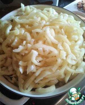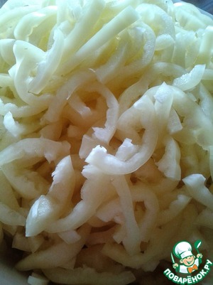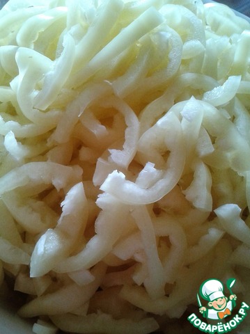 Перец очистить и порезать соломкой. Вес берется уже очищенного перца.