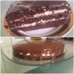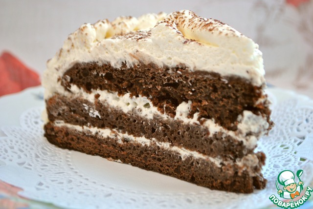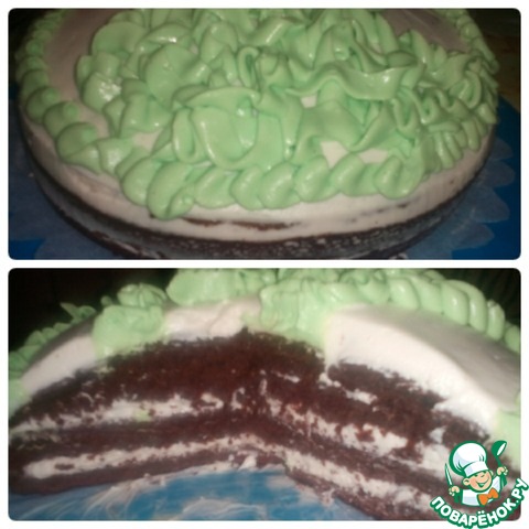 Когда бисквит остыл, я его разрезала на три части и промазала кремом. Кстати, крем, приготовленный по моему рецепту получается оооочень вкусным и нежным!