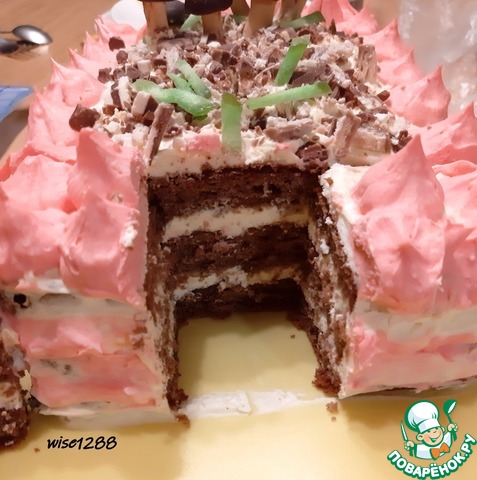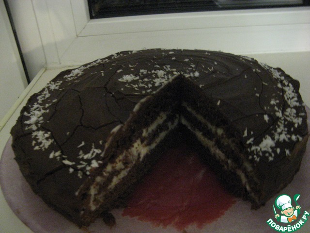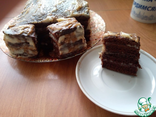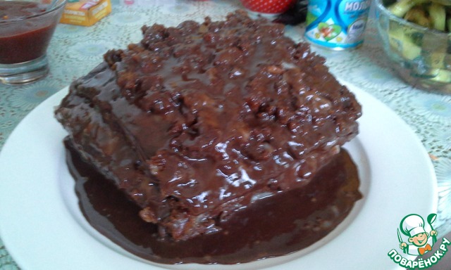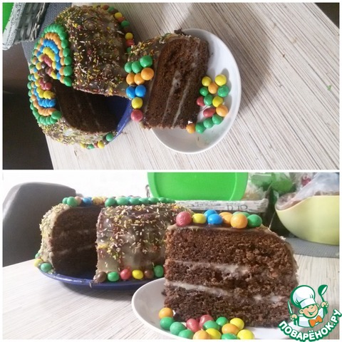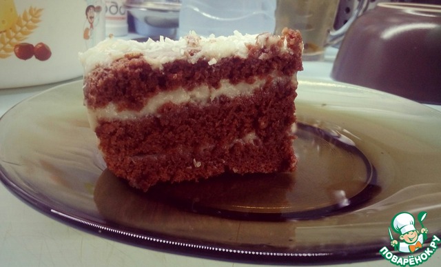 Сrazy cake. Посмотрела, на сайте есть один рецепт "безумного" торта, но он по составу совершенно другой, поэтому решила выставить свой рецепт. Торт действительно получается безумно-вкусный! Готовится без яиц и взбиваний - легко и просто, из минимального количества продуктов, которые всегда есть под рукой! Пропитывать не надо, торт можно кушать сразу, так как он получается нежный, с влажной текстурой! Можно даже не промазывать кремом! Готовила мужу на День Рождения.