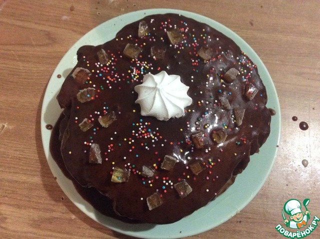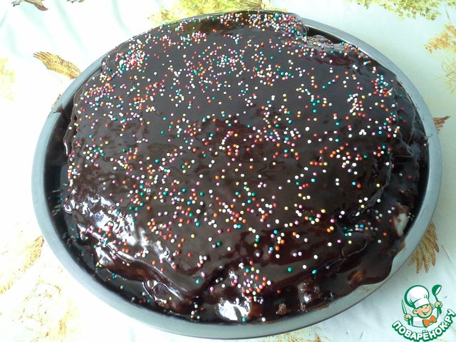 А сверху я покрываю шоколадной глазурью, получается и красиво, и очень вкусно!