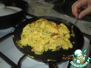 Во время приготовления помешиваем наш омлет и прожариваем его со всех сторон.
