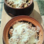 Собираем горшочки - первый слой курица, немного солим и перчим, затем лук и майонез, слой болгарского перчика, затем слой кабачков, снова лук, кабачки, болгарский перец. Сверху поливаем немного майонезом и посыпаем сыром.