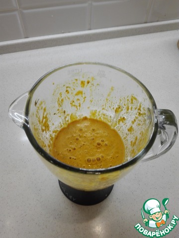 Пока тефтели обжариваются приготовим соус для их заливки. Ранее приготовленный соус помещаем в чашу блендера и измельчаем до однородной массы.