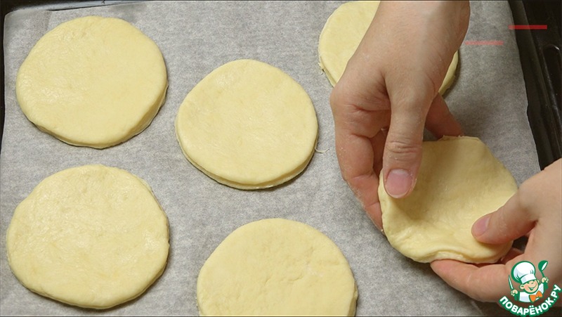 Раскатываю толщиной около сантиметра и вырезаю кружочки. Выкладываю на пергамент и отправляю в духовку примерно на 15 - 20 минут. Выпекаю при 180˚C.