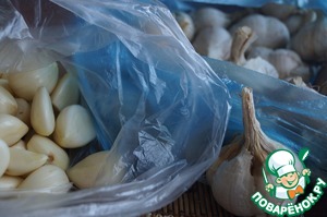 Самая сложная работа - это всё чистить. Я начала с чеснока. Просто очищала зубчики и складывала в пакет.