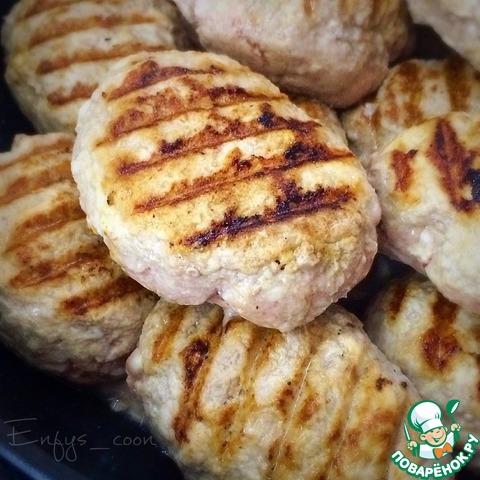 [+5]Фарш сделала сама из филе индейки; филе и лук измельчала блендером; котлеты не солила и не обжаривала - сразу запекала в духовке при 190° 40 минут.