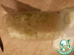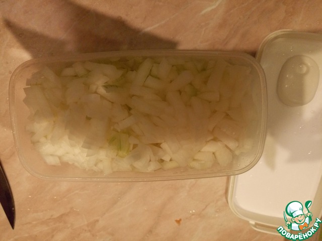 Тем временем, чистим и режем лучок.