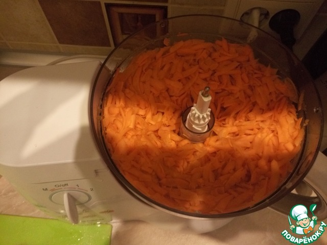 Чистим и натираем на крупной терке морковь (я это сделала в комбайне)
