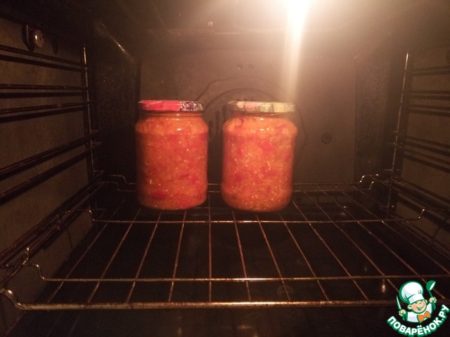 Раскладываем икорочку по теплым баночкам, накрываем!!! крышками и отправляем в духовку на стерилизацию при 120 градусах в течение 15 минут с момента разогрева духовки.