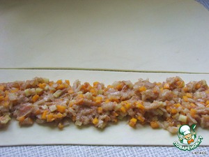 В середину полоски уложить начинку по всей длине. -